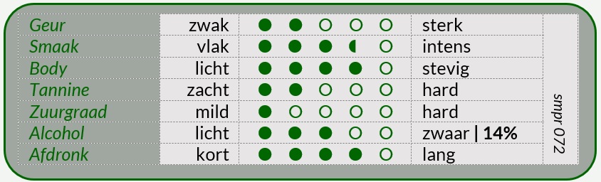 Een prima wijn voor bij vleesgerechten, BBQ, harde kazen en gedroogd fruit.