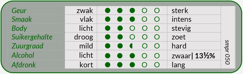 Bij het proeven noteerden wij een zeer bleekroze kleur; een gebrek aan kleur, dat zich zeker niet vertaalt in een gebrek aan smaak. De geur is snoepjesachtig. Volgens de wijnmaker ruikt hij naar siroop van witte perziken en mandarijnen. Ik ben zo vrij dat wat ver gezocht te vinden. De wijn is zacht en elegant van smaak en heeft een zoete aandronk en een frisse afdronk. Het is een verkwikkende wijn, die het goed zal doen in de zomermaanden.